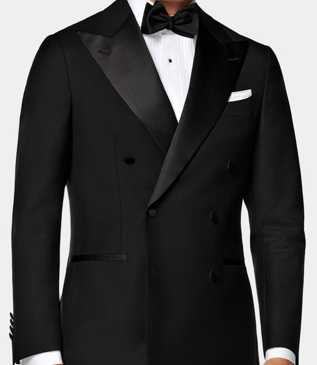 the most obvious differences of a tuxedo compared to a suit are the bow tie, and the satin/silk lapels